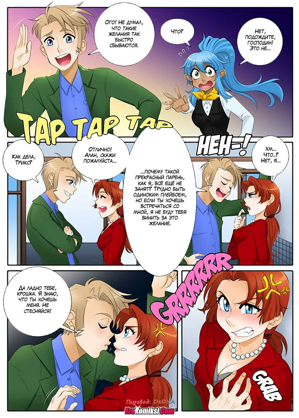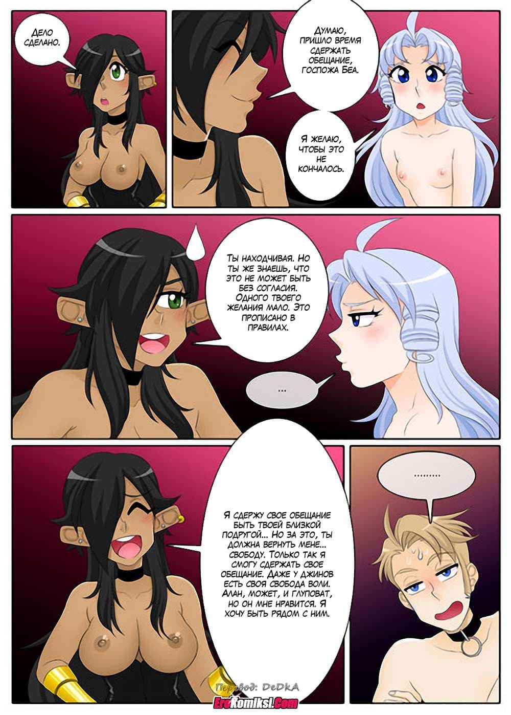 Джин из бутылки всегда подчиняется владельцу бутылки. Таковы правила джинов. Но женщина, даже если она джин, никогда не подчиняется никаким правилам и всё всегда делает так, как ей хочется. Может быть даже так, что женщина-джин загадывает желание, а хозяин бутылки выполняет его… Вот так!