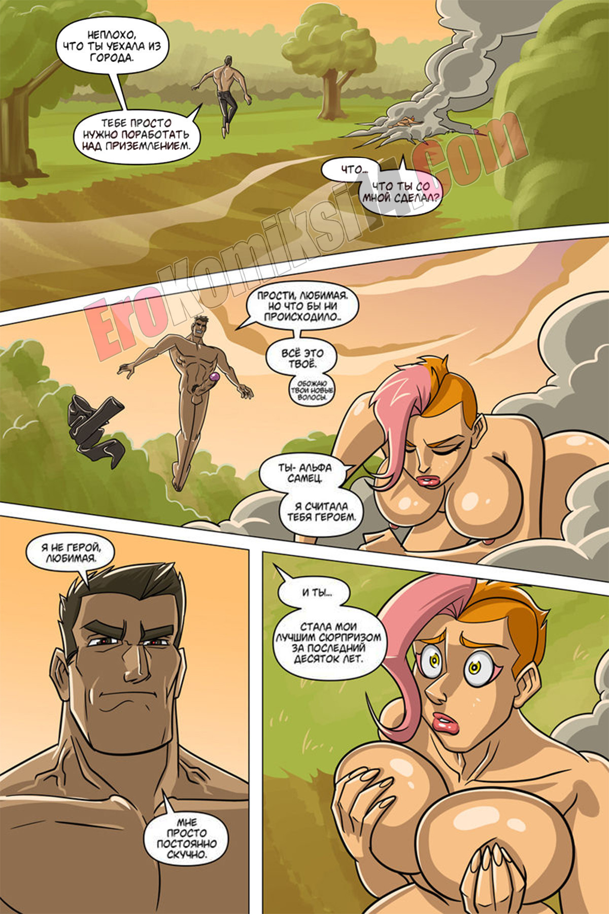 Порно комикс Могучий мёд. Часть 2. Mighty Honey. John North Аппетитная красавица с большими сиськами стала сражаться с парнем на высоте, но затем он сумел схватить ее, лишив любой возможности двигаться, и жестко оттрахал прямо в небе своим толстым членом…