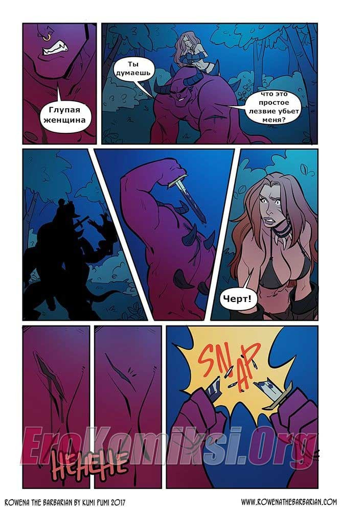 Порно комикс пародия «Ровена Варвар» расскажет вам о том, как две сексуальные путешественницы встретили в таверне мужчину, который просил помощи, т.к неизвестные похитили его сестру. Девушки согласились помочь. Найдя в лесу пленницу, они увидели, что девушка привязана к камню и над ней хотят совершить обряд. Извне появился демон с большим членом и решил лишить девушку девственности. Тут и началась битва, сопряженная с насилием, сексом и обильным развратом…