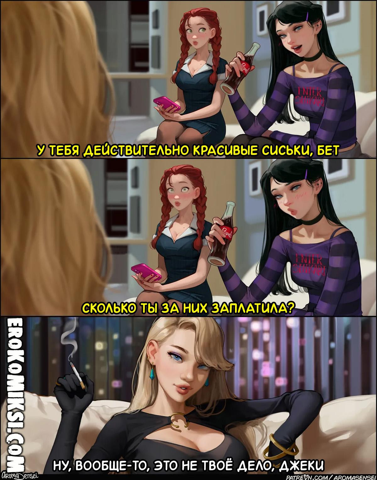 Порно комикс Spider-Man. Перемещение между Вселенными. Майлз спокойно лежал в своей комнате и слушал музыку, как вдруг, в его комнату нагрянула Гвен. Майлз не ожидал внезапному появлению своей подружки, а когда взглянул на неё, так и вовсе опешил, потому что Гвен кардинально выросла в области сисек и задницы. На удивлённое выражение лица Майлза, Гвен ответила, что она перемещается между вселенными и из-за этого, у неё очень сильно увеличиваются интимные части тела…