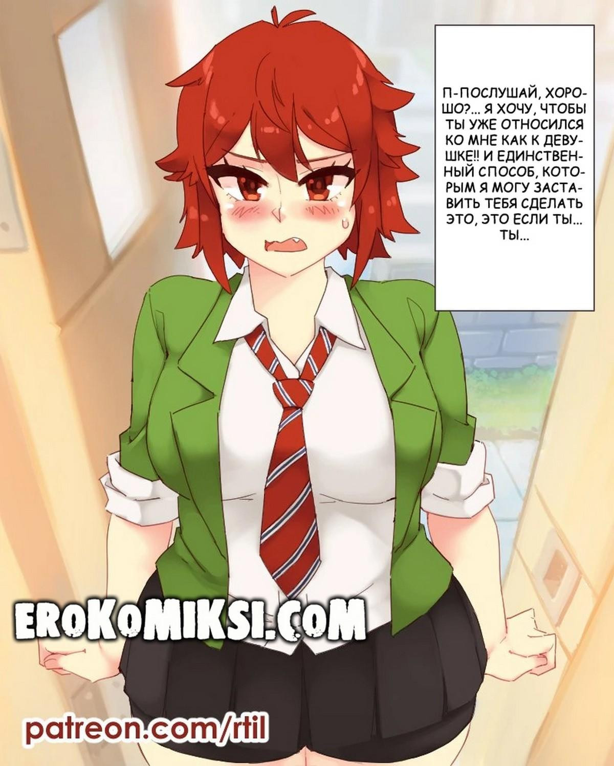 Порно комикс Томо-Тян. Горячая рыжеволосая девушка Томо-тян уже устала, что её друг относится к ней как к братану и поэтому она решила раз и навсегда закрыть эту тему, показав свои прелестно-большие сиськи и дать свою сладкую пиздёнку…