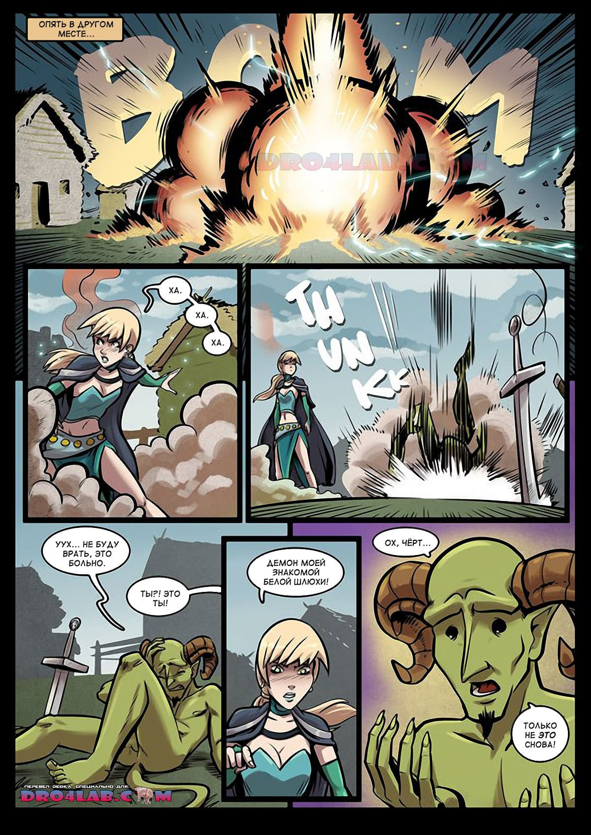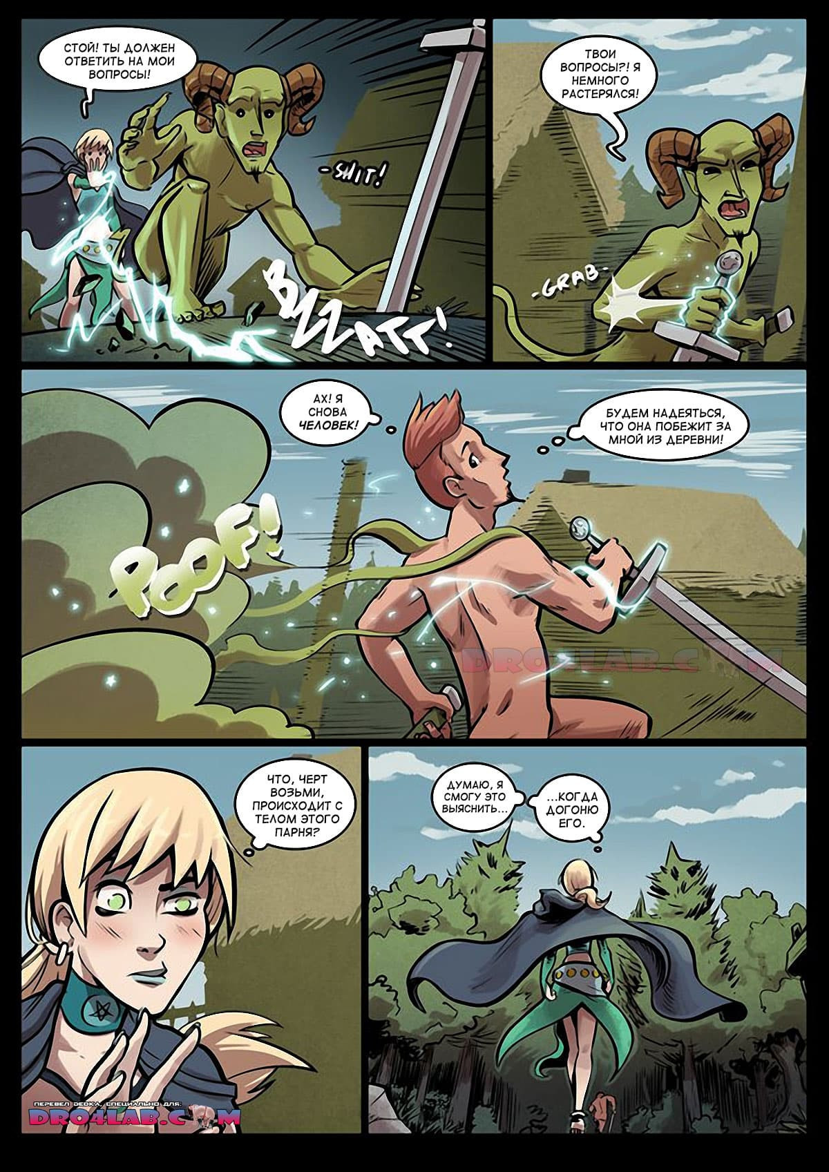 В данной части фантазийного порно комикса под названием «ВолшЕбница» бедный Так, наконец, снова на некоторое время оказывается в своём человеческом обличье и вновь получает возможность жить, как человек. А что это значит? А то, что теперь он снова может пить, кутить, и, конечно, трахать! А чего вы еще ожидали? А вот злой волшебнице Морвене, превращённой ворону, такая желанная человеческая жизнь пока всё ещё никак недоступна, хотя ей очень хочется. Поэтому она никак не может успокоиться, пока не вернет свой человеческий облик…
